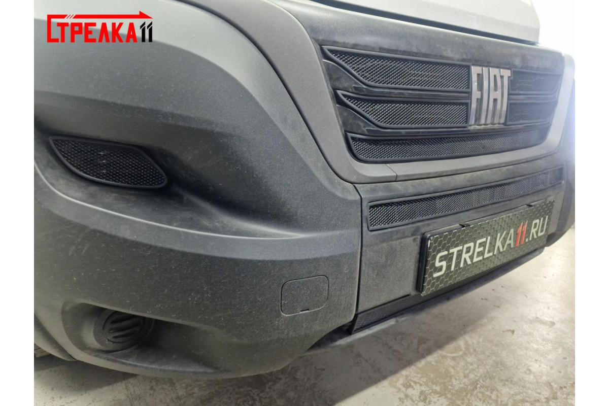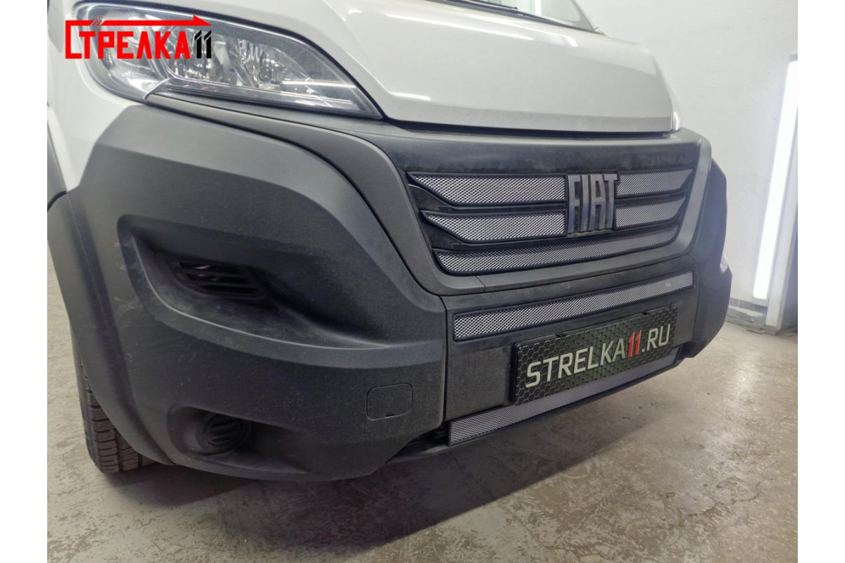 Защитная сетка радиатора для автомобиля FIAT DUCATO III рестайлинг 2014, 2015, 2016, 2017, 2018, 2019, 2020, 2021, 2022, 2023, 2024г.в. Устанавливается самостоятельно без снятия бампера.