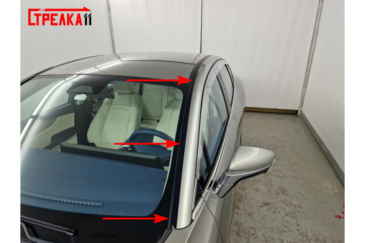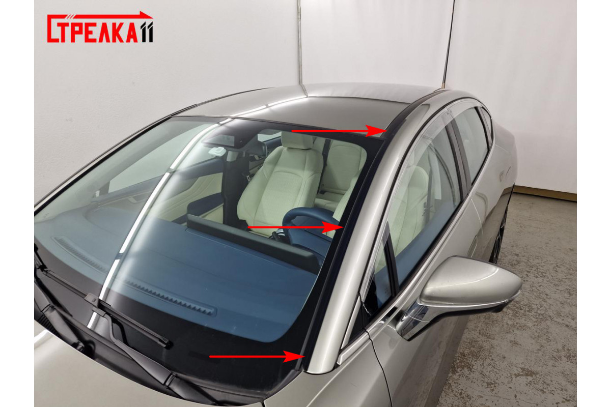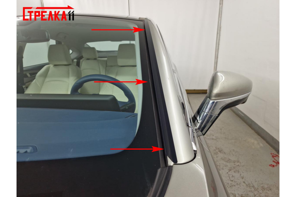 - Начните установку с нижней части стойки лобового стекла (рис. 2)