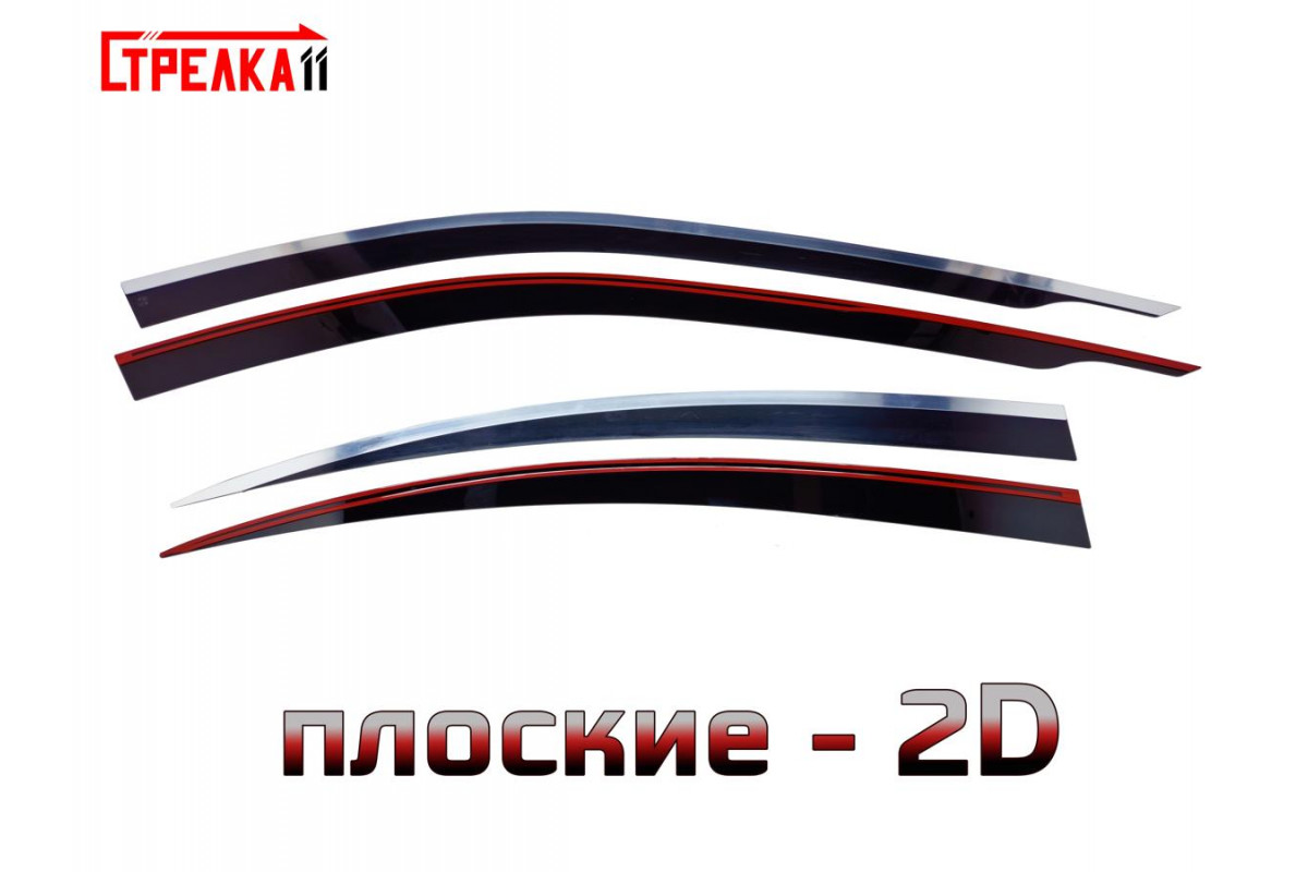 Аэродинамический дефлектор на окна автомобиля 2D от Компании "Стрелка11" не выступает за пределы кузова и не препятствует потокам воздуха, не создаёт дополнительных шумов, а также сливается с автомобилем как единое целое и выглядит на автомобиле как его неотъемлемая часть, с фронтальной и тыльной стороны совершенно невидим.
