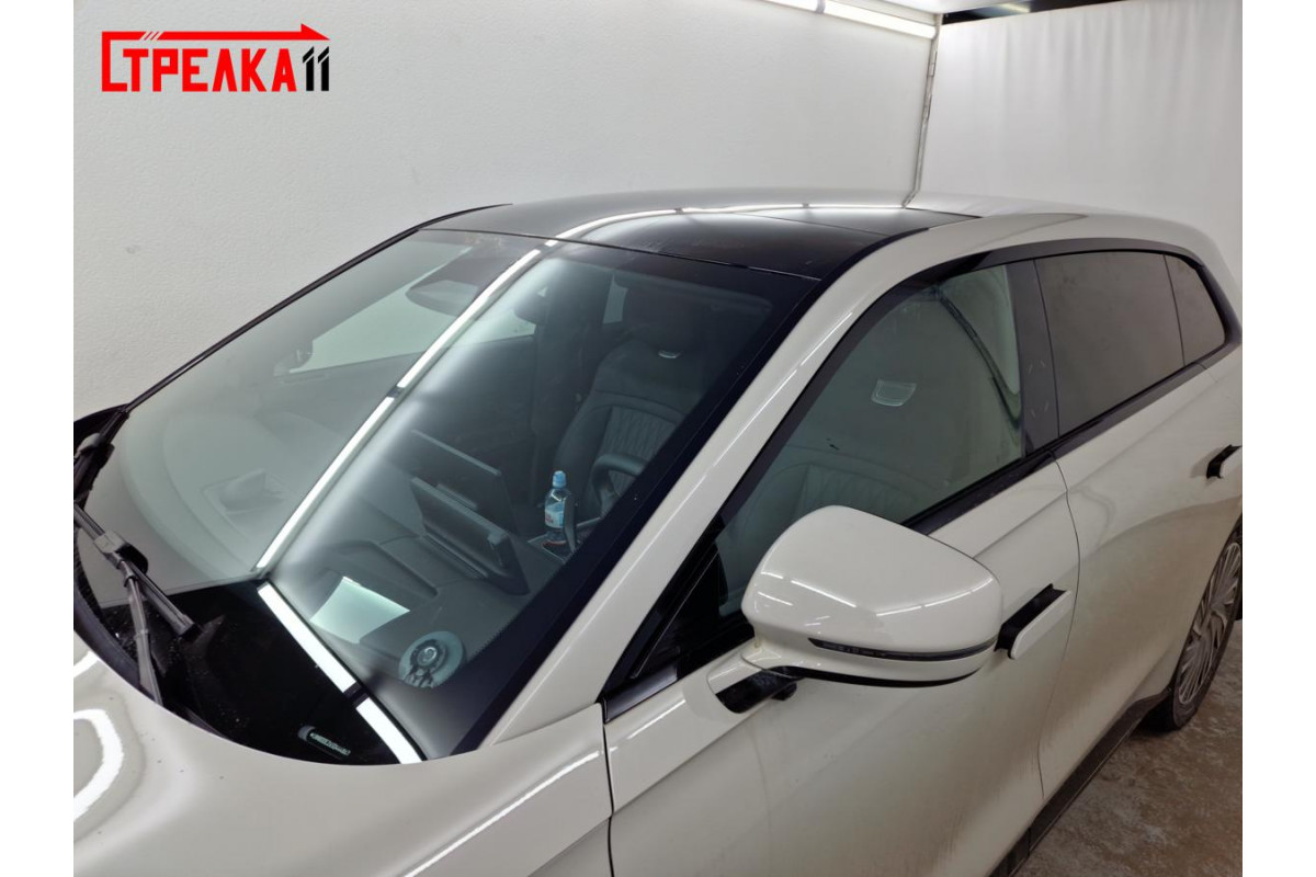 Необходимо снять защитный слой с пленки (гидрофобный или керамический) в месте установки при помощи мелкозернистой шкурки (1000-2000). После чего устанавливайте водосток по инструкции.