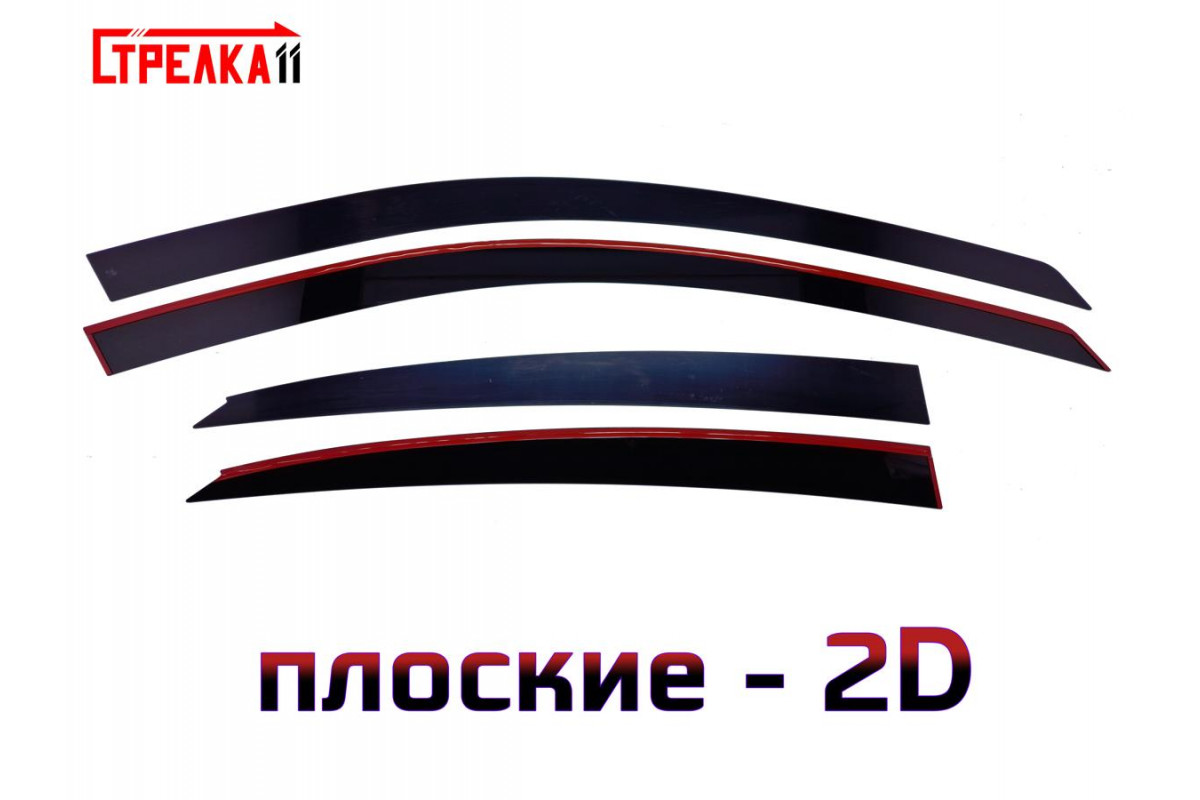 Аэродинамический дефлектор на окна автомобиля 2D от Компании "Стрелка11" не выступает за пределы кузова и не препятствует потокам воздуха, не создаёт дополнительных шумов, а также сливается с автомобилем как единое целое и выглядит на автомобиле как его неотъемлемая часть, с фронтальной и тыльной стороны совершенно невидим.