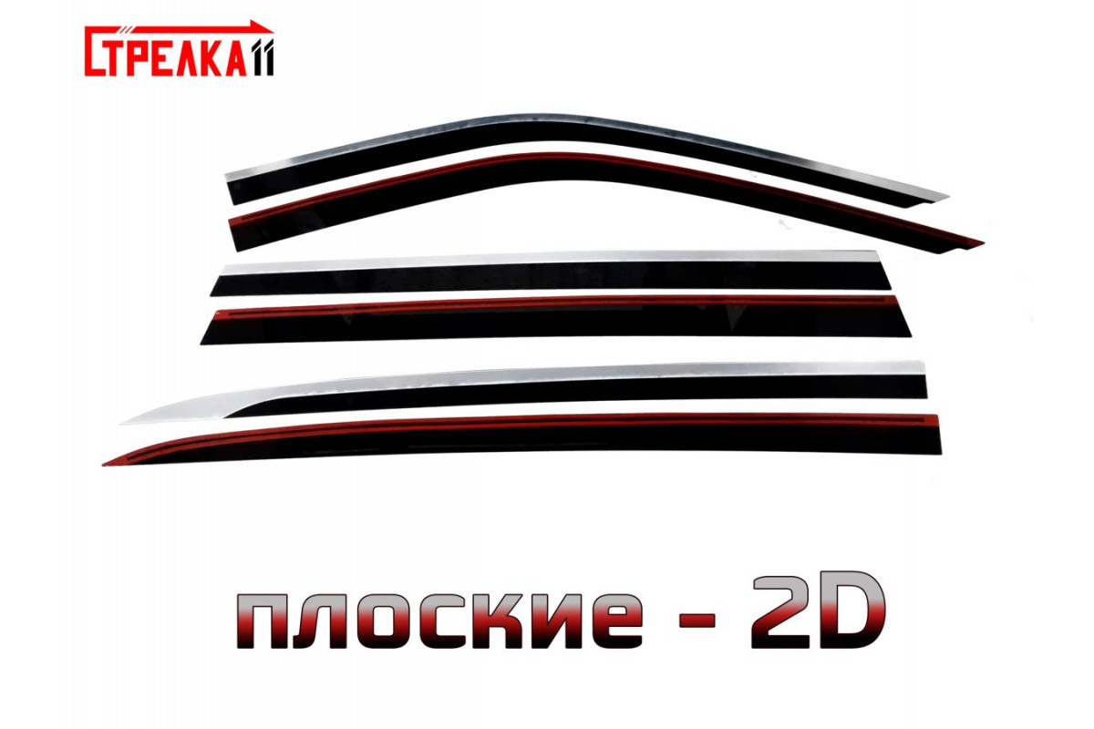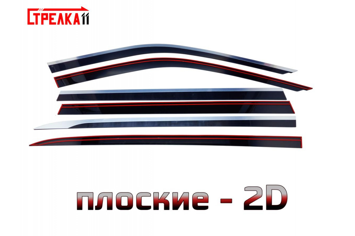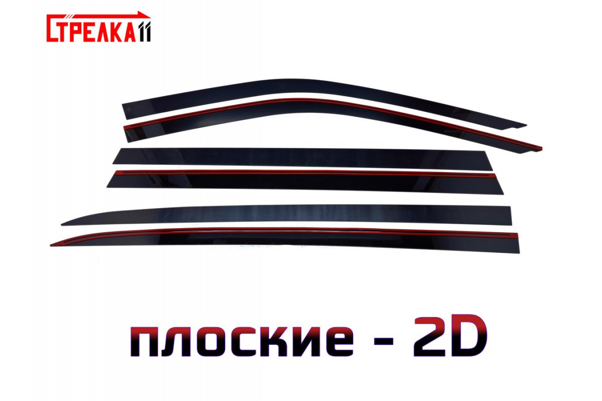 Аэродинамический дефлектор на окна автомобиля 2D от Компании "Стрелка11" не выступает за пределы кузова и не препятствует потокам воздуха, не создаёт дополнительных шумов, а также сливается с автомобилем как единое целое и выглядит на автомобиле как его неотъемлемая часть, с фронтальной и тыльной стороны совершенно невидим.