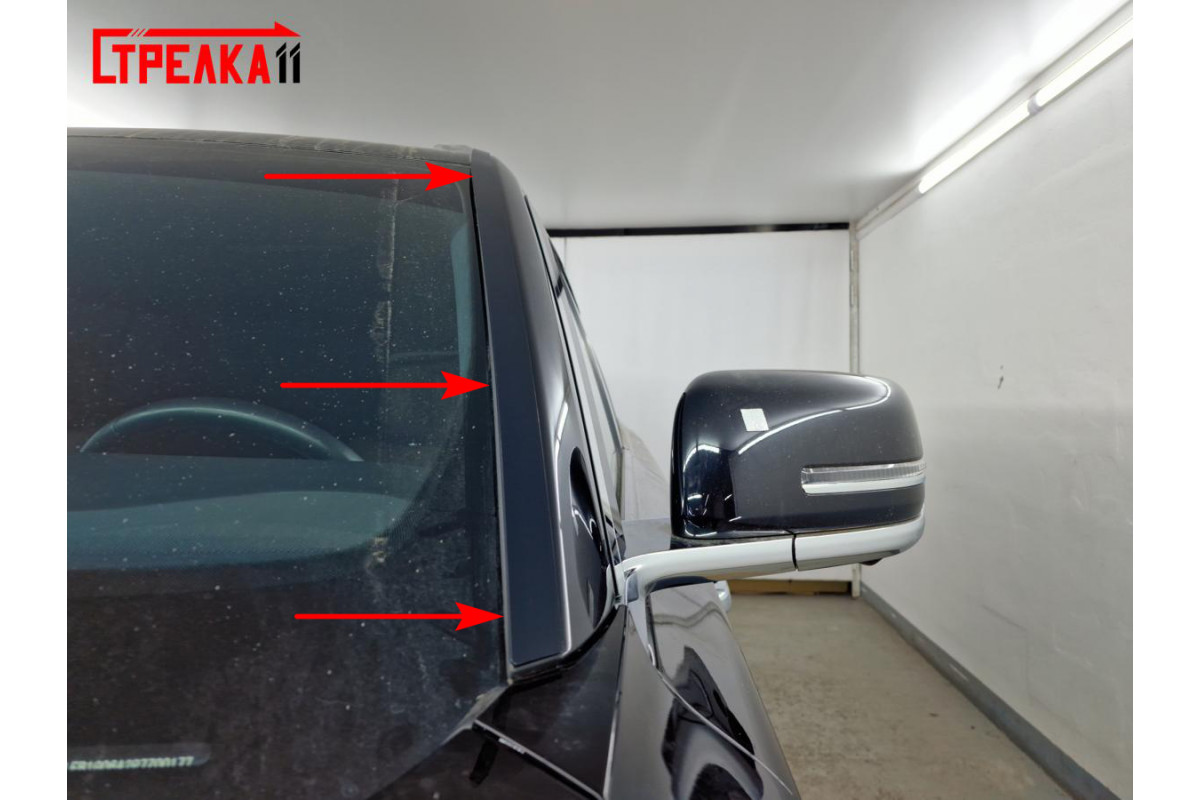 - Начните установку с нижней части стойки лобового стекла (рис. 2)