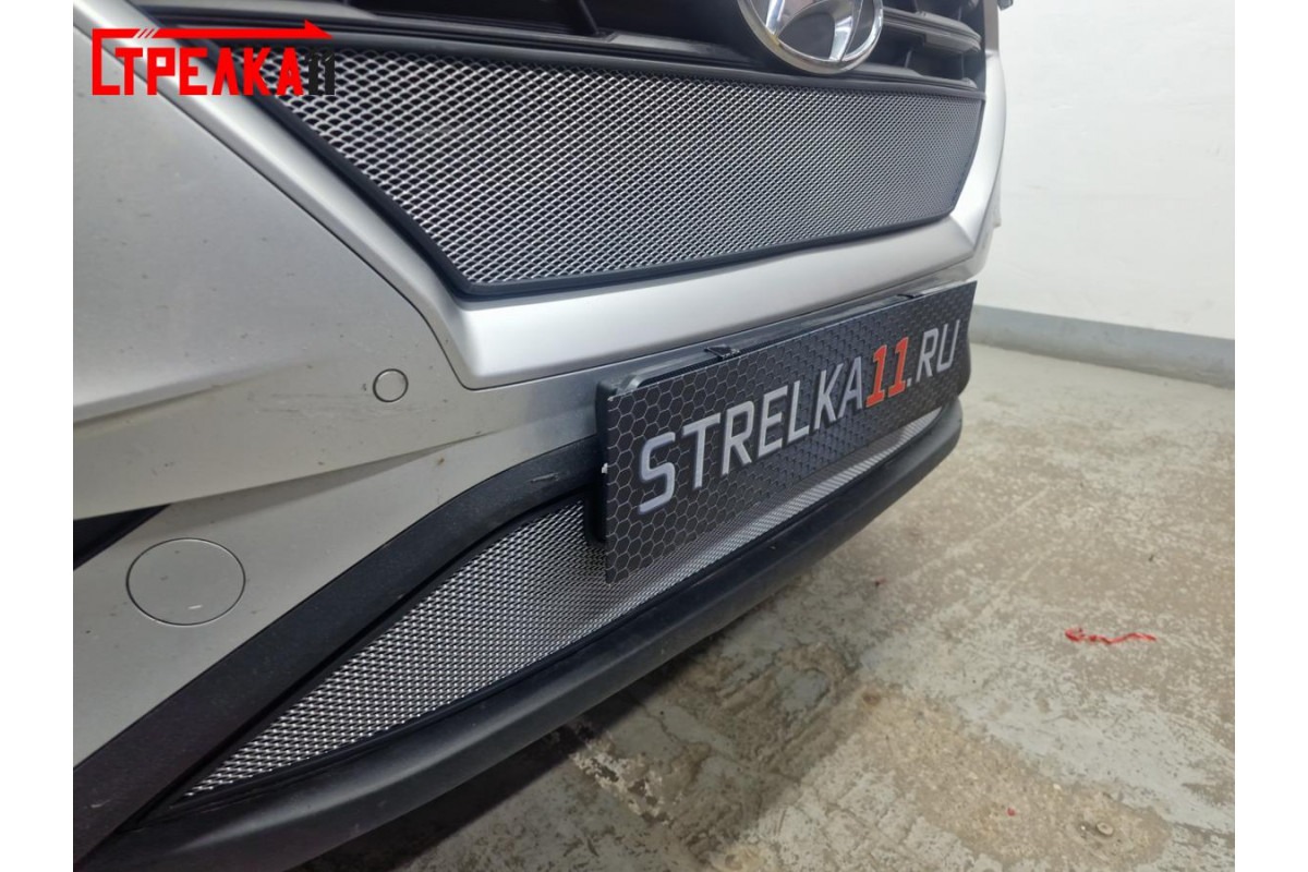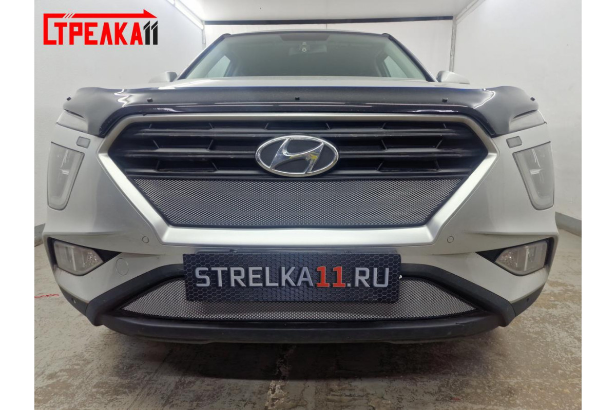 Защита радиатора для HYUNDAI CRETA II 2020, 2021, 2022г.в. Видео по установке. Опыт производства защитных сеток с 2006г. Установка защиты радиатора от "Стрелка11" избавит вас от лишних хлопот и затрат. Правильный подбор ячейки алюминиевой сетки, которая идеально защищает радиатор без ущерба для охлаждения двигателя. Изготовлена из алюминиевой сетки с размером ячейки 3*7мм. Со стандартным, ромбовидным рисунком. Защищает радиатор автомобиля от попадания в него небольших камней, насекомых и прочего мелкого мусора, не препятствуя потокам воздуха (без ущерба для охлаждения двигателя).