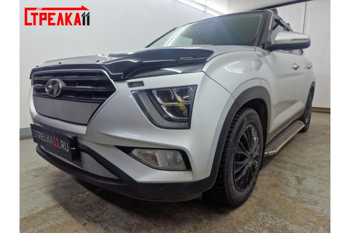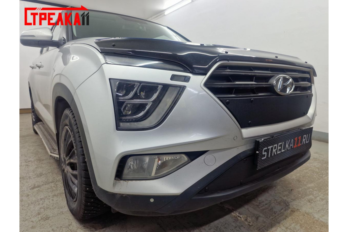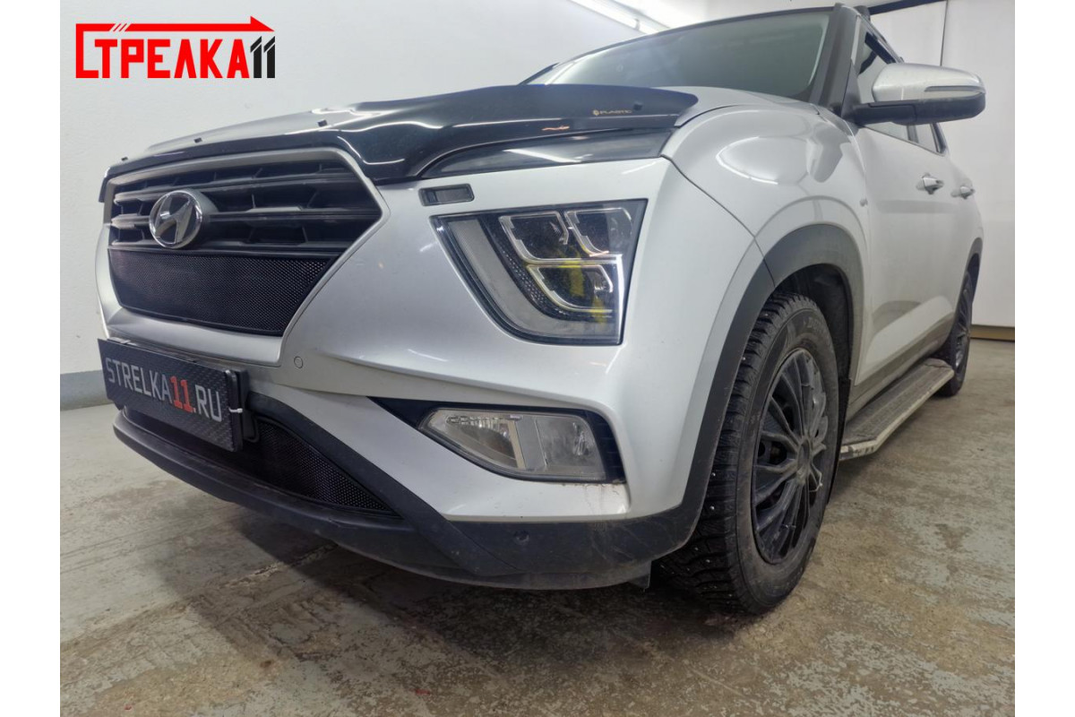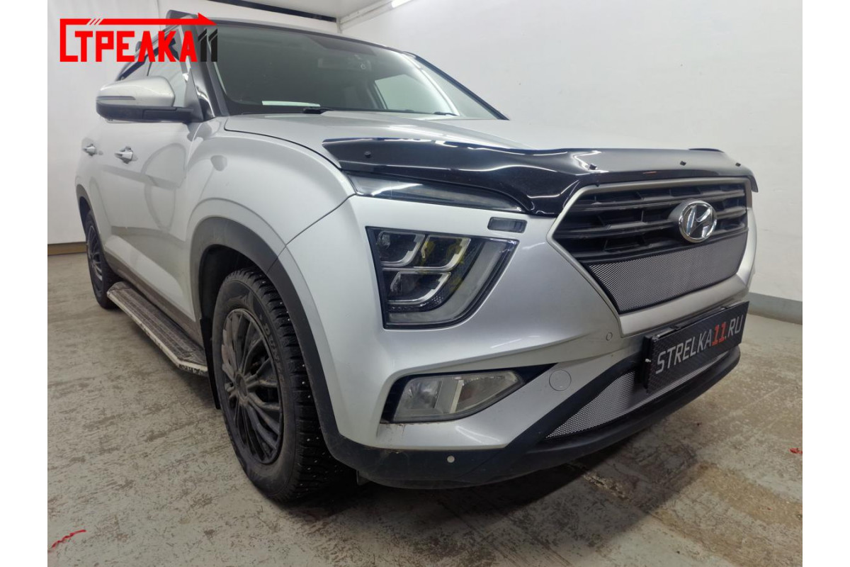 Защитная сетка радиатора для автомобиля HYUNDAI CRETA II 2020, 2021, 2022г.в. Устанавливается самостоятельно без снятия бампера.