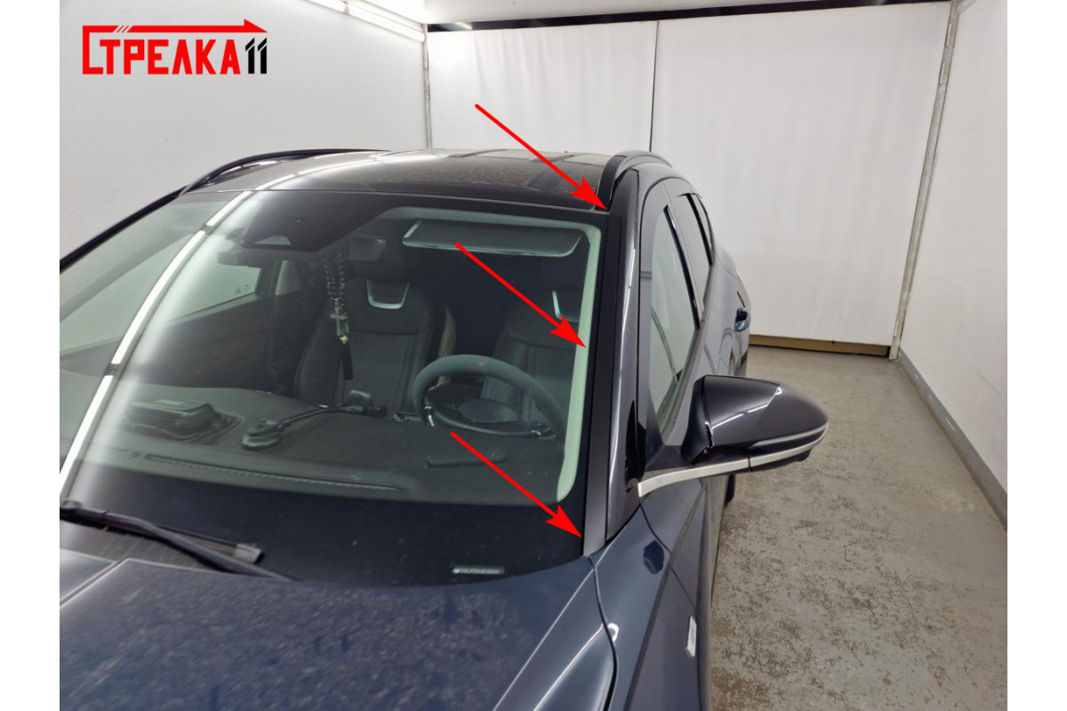 - Начните установку с нижней части стойки лобового стекла (рис. 2)