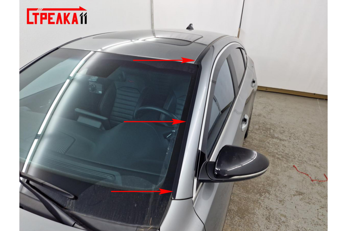 • Устанавливается дефлектор на переднюю стойку автомобиля, по всей длине стойки к ближнему краю лобового стекла. (рис.1)