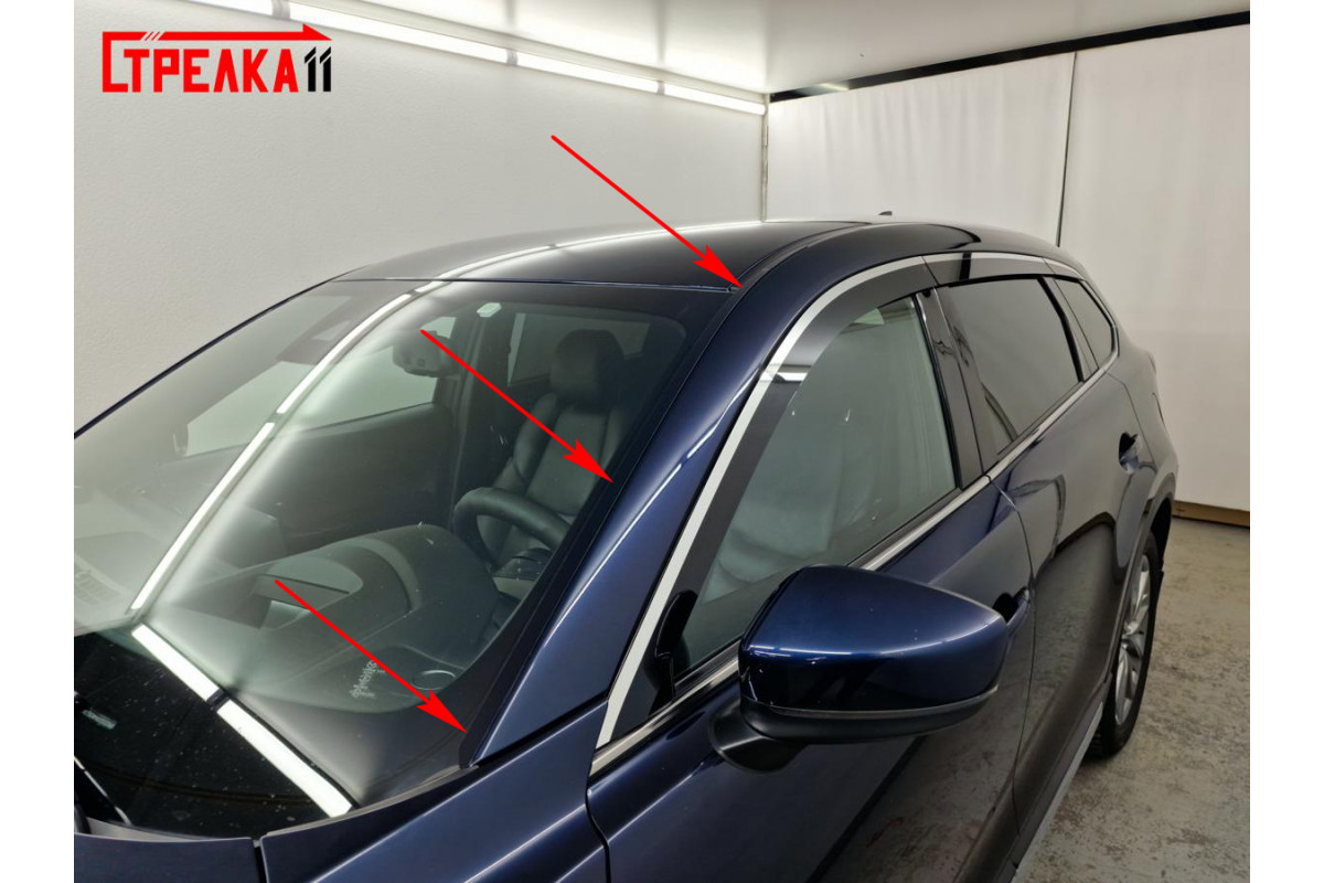 Эффективно защищает боковые стекла и салон автомобиля, когда окна открыты, от грязи с лобового стекла во время работы щёток стеклоочистителя.
