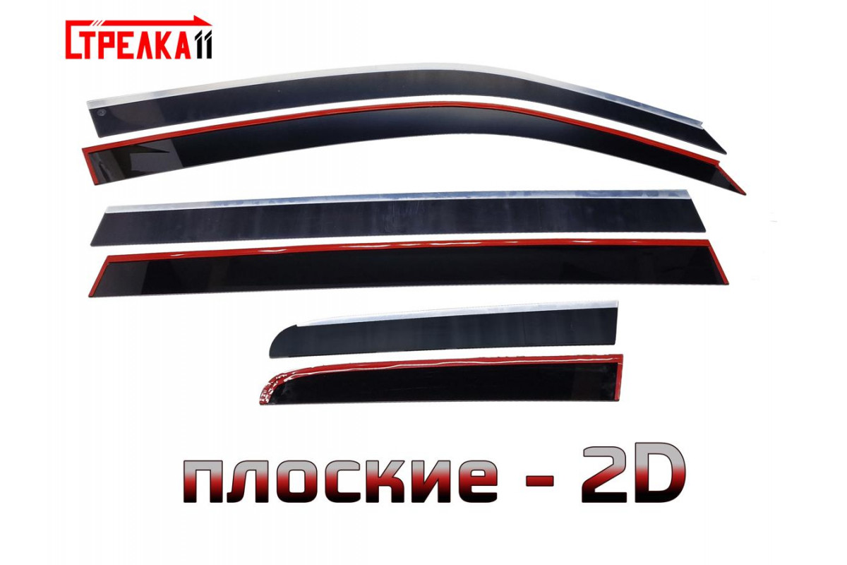 Аэродинамический дефлектор на окна автомобиля 2D от Компании "Стрелка11" не выступает за пределы кузова и не препятствует потокам воздуха, не создаёт дополнительных шумов, а также сливается с автомобилем как единое целое и выглядит на автомобиле как его неотъемлемая часть, с фронтальной и тыльной стороны совершенно невидим.