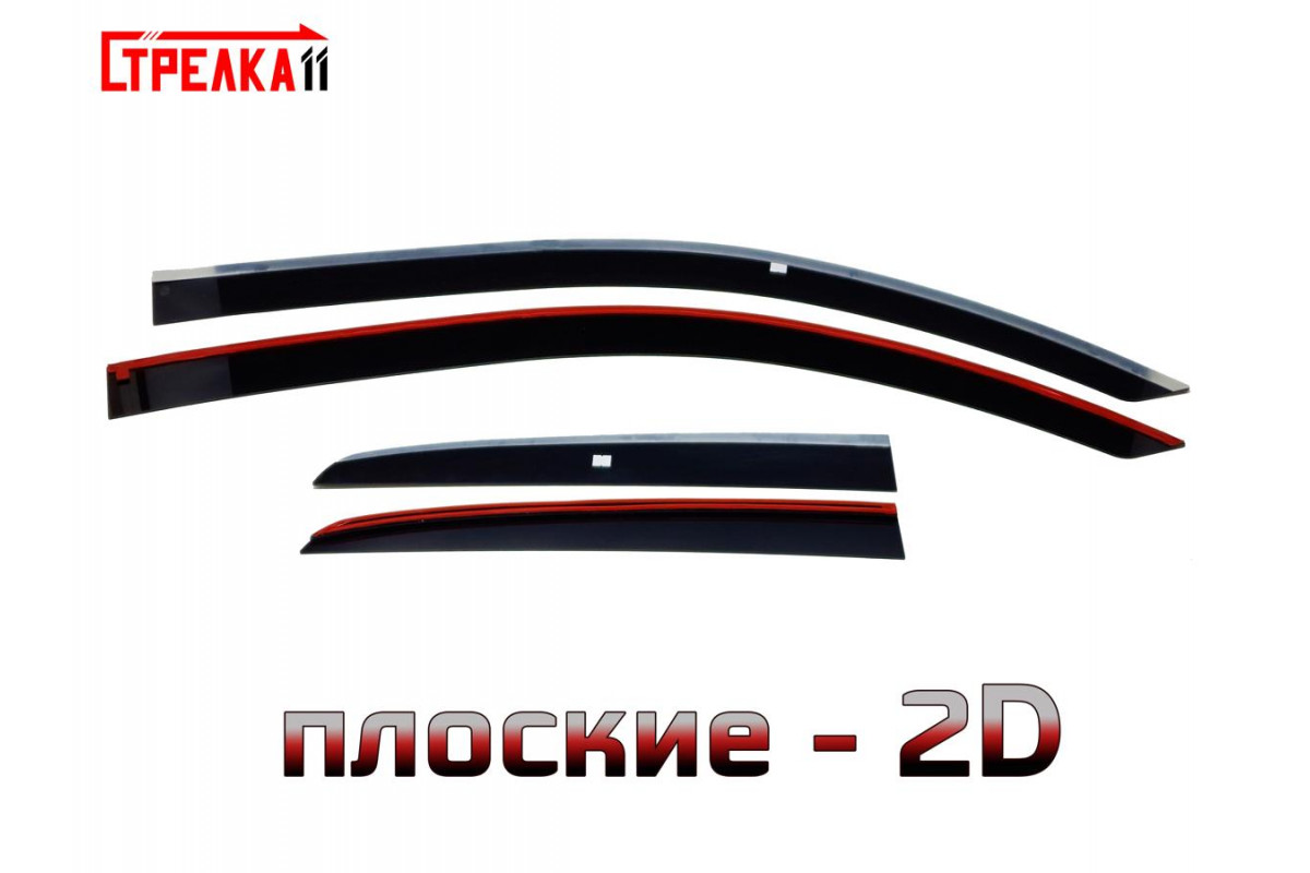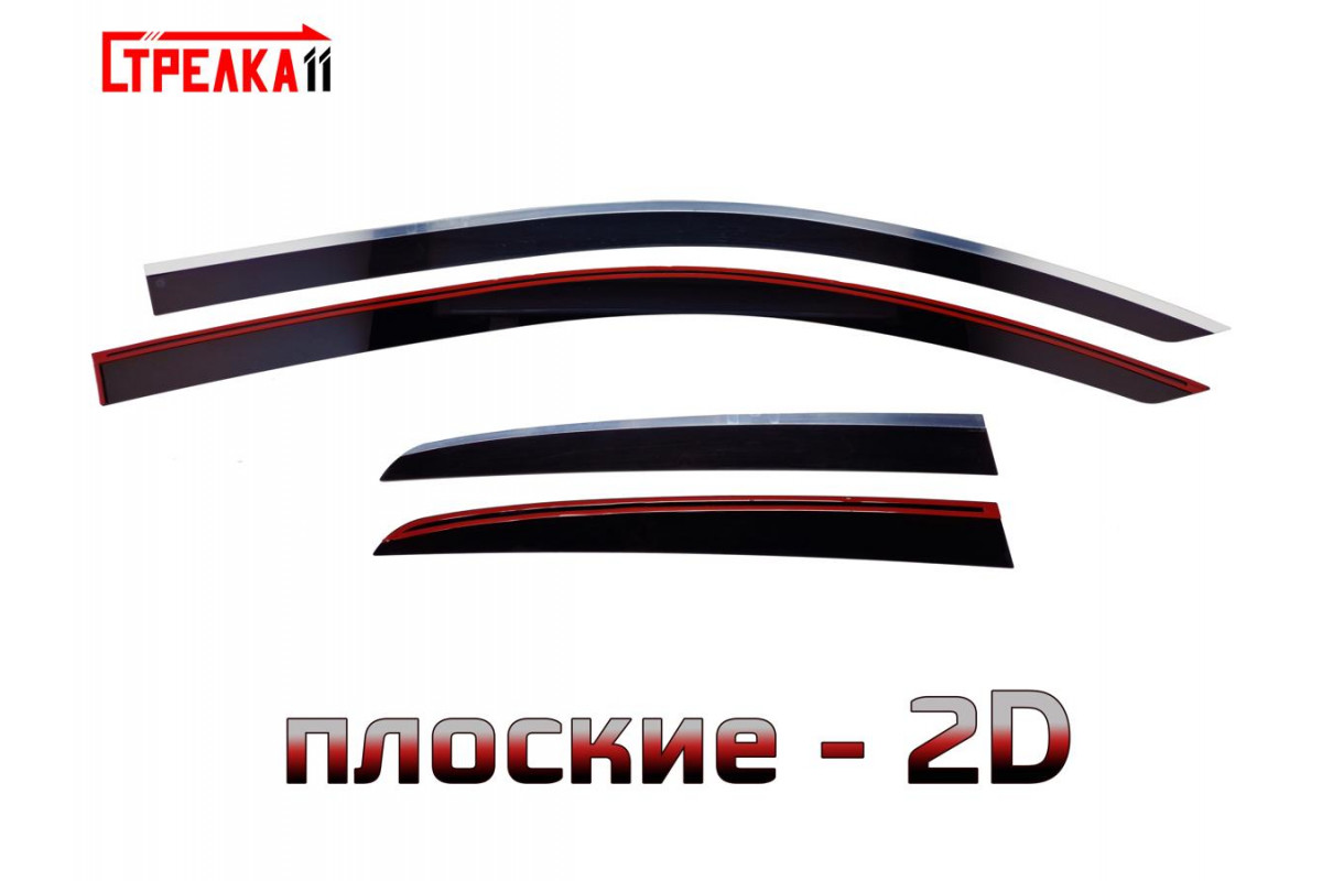 Аэродинамический дефлектор на окна автомобиля 2D от Компании "Стрелка11" не выступает за пределы кузова и не препятствует потокам воздуха, не создаёт дополнительных шумов, а также сливается с автомобилем как единое целое и выглядит на автомобиле как его неотъемлемая часть, с фронтальной и тыльной стороны совершенно невидим.