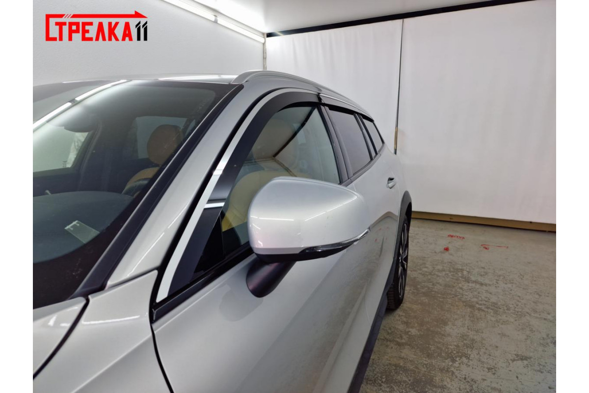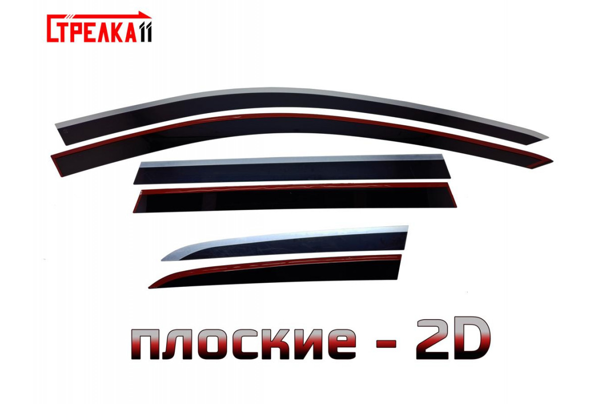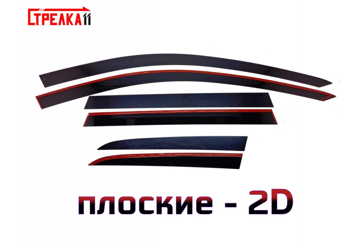 Аэродинамический дефлектор на окна автомобиля 2D от Компании "Стрелка11" не выступает за пределы кузова и не препятствует потокам воздуха, не создаёт дополнительных шумов, а также сливается с автомобилем как единое целое и выглядит на автомобиле как его неотъемлемая часть, с фронтальной и тыльной стороны совершенно невидим.