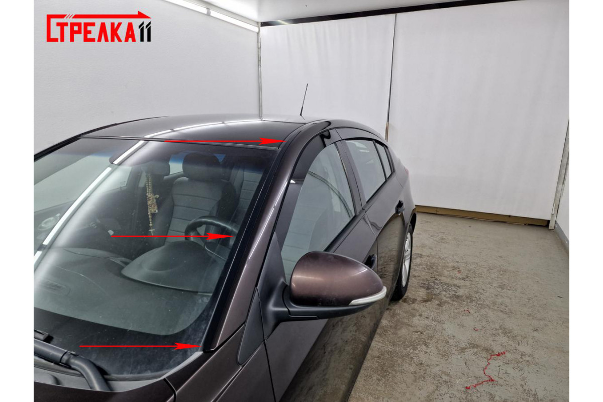 - Устанавливается дефлектор на переднюю стойку автомобиля, по всей длине стойки к ближнему краю лобового стекла. (рис.1)