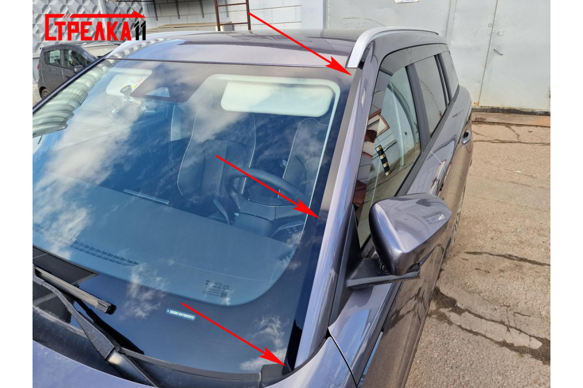 - Начните установку с нижней части стойки лобового стекла (рис. 2)