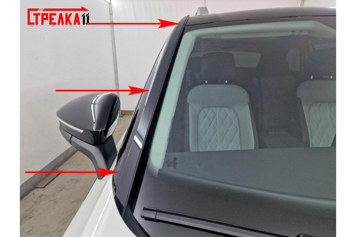 • Начните установку с нижней части стойки лобового стекла (рис. 2)
